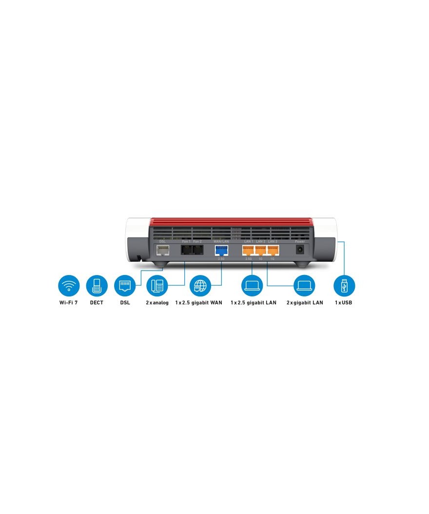 De FRITZ!Box 7682 voor de DSL-aansluiting ondersteunt G.fast en supervectoring 35b, zodat hoge glasvezelsnelheid via het bestaande DSL-netwerk in huis komt. Zo zijn met G.fast snelheden tot wel 1 Gbit/s mogelijk en met supervectoring 35b tot wel 300 Mbit/s. Met WiFi 7, twee 2,5 Gbit/s WAN-/LAN-aansluitingen, Mesh WiFi-technologie en een uitgebreide uitrusting voor telefonie en smarthome heeft de FRITZ!Box 7682 alles aan boord wat de klant van een modern thuisnetwerk verwacht.