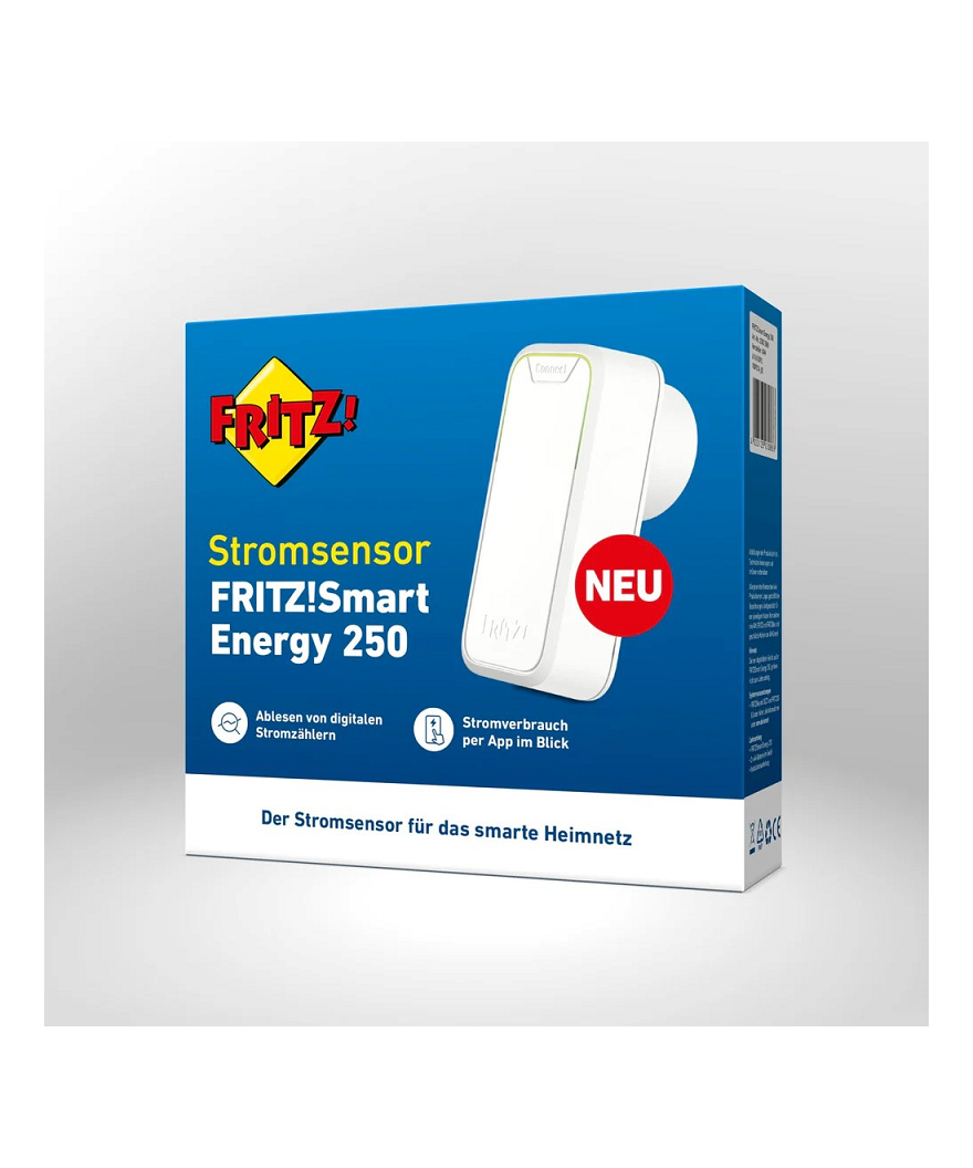 De FRITZ!DECT 250 is een optische sensor waarmee een elektriciteitsmeter van de netbeheerder kan worden uitgelezen voor het FRITZ!DECT Smart Home systeem. De FRITZ!DECT 250 plaatst u op een geschikte ontgrendelde elektriciteitsmeter met een optische poort. Na het instellen kunt u het energieverbruik bij houden. Vervolgens kunt u een schema opstellen in het FRITZ!DECT Smart Home systeem wat er moet gebeuren bijvoorbeeld dat de verlichting rood gaat branden bij een hoog energie verbruik.