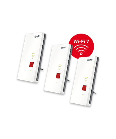 • Mesh WiFi-systeem bestaande uit drie of twee FRITZ!Repeaters 2700 voor optimale WiFi-verbindingen in elke ruimte